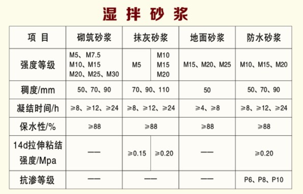濕拌砂漿性能指標(biāo)